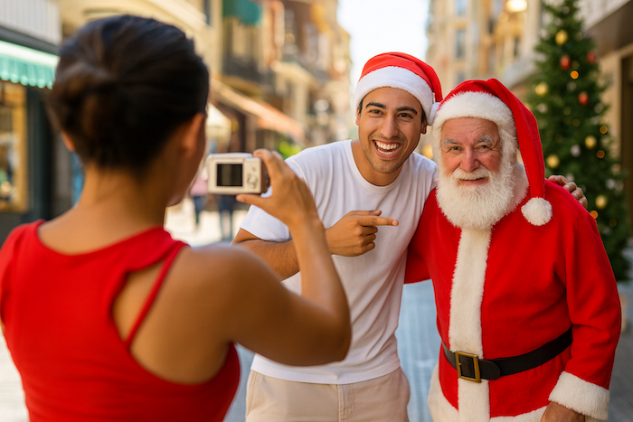 Rond middernacht, wanneer het vuurwerk losbarst, wordt er getoast met cider. Papá Noel zorgt voor de cadeautjes. Door de zomerse warmte vieren veel jongeren daarna verder op het strand, waar tijdelijke openluchtclubs worden ingericht.