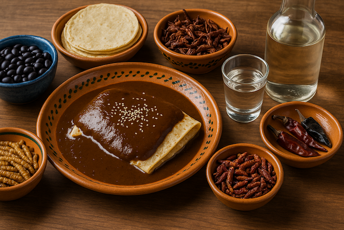 Oaxaca is zonder overdrijven één van de culinaire hoofdsteden van Mexico. De keuken staat bekend om haar verfijning en diversiteit, met specialiteiten zoals blandas (de regionale tortilla), pasilla oaxaqueña (een aromatische chilisaus), frijoles negras, maisgerechten en natuurlijk de beroemde mole. Oaxaca telt maar liefst negen verschillende mole-varianten, elk met een eigen complexe smaak. Voor de echte liefhebber mogen ook eetbare insecten niet ontbreken. Agavewormen, mieren en sprinkhanen (chapulines) worden op markten én in hoogwaardige restaurants geserveerd en zijn verrassend smaakvol.