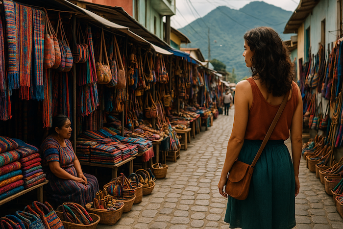 De hoofdstraat Calle Santander in Panajachel is het winkelhart van het meer. Hier wisselen vaste winkels en straatkraampjes elkaar af, met een aanbod dat varieert van handgeweven tassen en sjaals tot sieraden van zilver en vulkanisch gesteente. De sfeer is levendig, met straatmuzikanten, kunstenaars en reizigers die zich laten verleiden door de geur van vers geroosterde koffie. Voor een iets rustiger winkelervaring kun je uitwijken naar de zijstraatjes richting het meer, waar kleinere ateliers en duurzame winkels opduiken met producten van lokale ontwerpers.