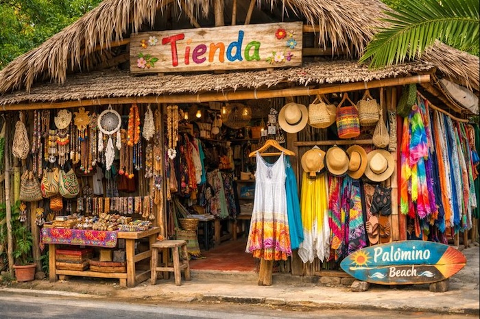 Langs de hoofdweg en in de zijstraatjes van Palomino vind je kraampjes en kleine winkels met handgemaakte sieraden, armbanden van zaden en schelpen, macramé, tassen en kleurrijke doeken. Veel producten zijn gemaakt door lokale bewoners of inheemse gemeenschappen uit de Sierra Nevada. Elk stuk is uniek; afdingen kan, maar doe dat met respect.