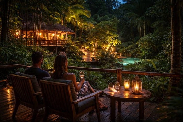 Veel bezoekers verblijven in ecolodges of hotels in en rond het natuurgebied. Hier speelt het uitgaan zich vooral af binnen de accommodatie: diners bij kaarslicht, cocktails bij het zwembad of een avondwandeling met jungle-geluiden op de achtergrond. Soms worden er speciale activiteiten aangeboden, zoals nachtelijke natuurwandelingen of vollemaanbezoeken aan de watervallen. Subtiel, bijzonder en perfect passend bij de omgeving.