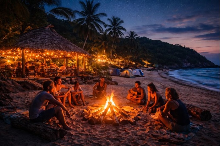 Binnen het park speelt het avondleven zich vooral af bij ecolodges en strandkampen zoals rond Cabo San Juan. Gasten eten gezamenlijk, drinken een biertje of een rum en praten na bij kaarslicht of een klein kampvuur. De geluiden van de jungle en de zee vormen het decor. Het tempo ligt laag, telefoons verdwijnen vanzelf uit beeld en gesprekken krijgen de ruimte.