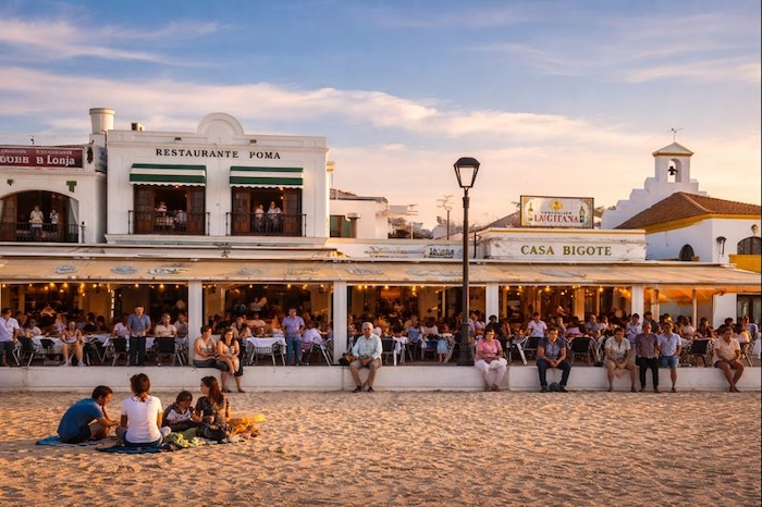 De zeepromenade bij Bajo de Guía is een must voor liefhebbers van visgerechten. Hier eet je garnalen, langoustines en gegrilde vis met uitzicht op de monding van de Guadalquivir. De manzanilla uit Sanlúcar smaakt ziltig en fris en past perfect bij zeevruchten - duidelijk anders dan de klassieke sherry uit Jerez. Absolute aanrader is Mirador de Doñana, strategisch gelegen en bekend om zijn constante kwaliteit. Ook Casa Bigote geniet een uitstekende reputatie en is al decennialang een begrip.